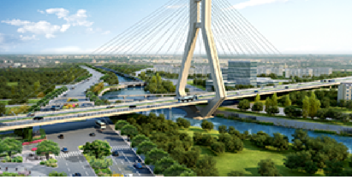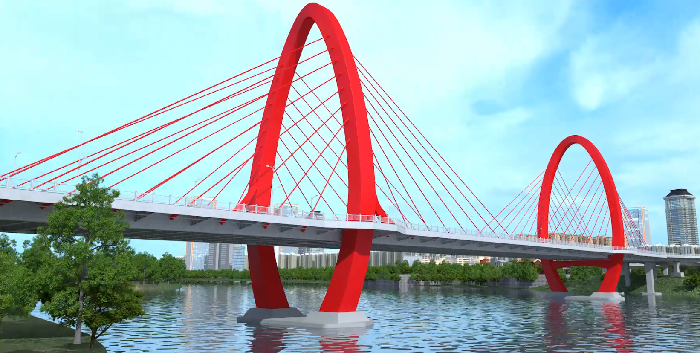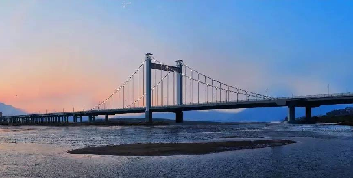 漳州(zhōu)市芝山南路(lù)跨江橋梁(liáng)及(jí)連接工程項目是福建省重點工程,項目南起江濱路, 跨越(yuè)九龍江西,終點位於瑞京路(lù)- 芝山南路交叉口,項目總長1281.211米。主橋長 300米,橋麵寬36米,雙向6車道,主(zhǔ)線設計速度每小時(shí)40小時,采用雙塔雙索(suǒ)麵 斜拉橋。福建船政承(chéng)接其中鋼梁、鋼塔(tǎ)柱製作(zuò)及安(ān)裝工程,工程總量約4436噸。
